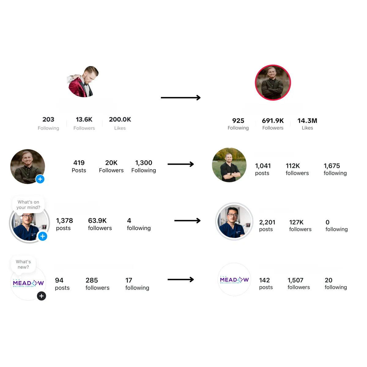 You can expect: a professional, consistent online presence, more engagement, and a growing audience. Most importantly, our focus is on turning that growth into new clients, patients, or customers.